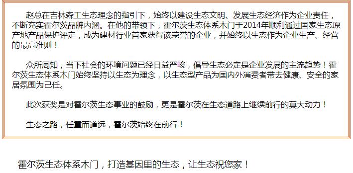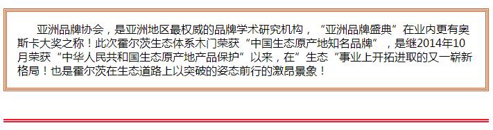 霍爾茨榮獲亞洲品牌協(xié)會中國生態(tài)原產(chǎn)地知名品