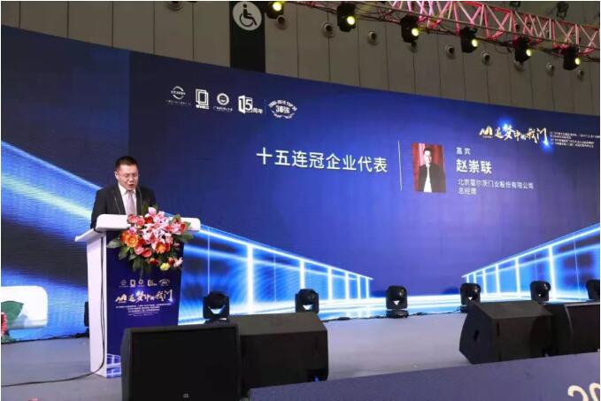 憑借對產(chǎn)品的堅(jiān)持、對環(huán)保的堅(jiān)持、對發(fā)展的堅(jiān)持,本次大會中,北京霍爾茨門業(yè)股份有限公司連續(xù)15年獲得“全國市場、工程木門企業(yè)產(chǎn)品質(zhì)量、售后服務(wù)雙承諾活動單位”獎項(xiàng)?;魻柎拈T業(yè)總經(jīng)理趙崇聯(lián)趙總上臺領(lǐng)獎,并作為連續(xù)15年獲得“木門三十強(qiáng)”企業(yè)的領(lǐng)軍人物,發(fā)表了講話。