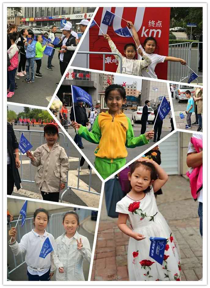 活潑可愛的小朋友們,手里拿著泉陽泉的小旗子,四下?lián)]舞,小朋友們仿佛是馬拉松賽道上的精靈,開朗的笑容像五月的暖陽,她們的笑聲就是支持的力量。