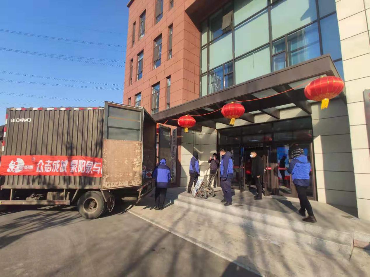 “泉陽泉,向前線英雄致敬”系列活動的第五站,便是各大街道、社區(qū)辦事處,陸續(xù)分批向奮戰(zhàn)在經(jīng)開區(qū)管委會、會展街道、前進街道、衛(wèi)星社區(qū)等多個單位的英雄們運送泉陽泉天然礦泉水。