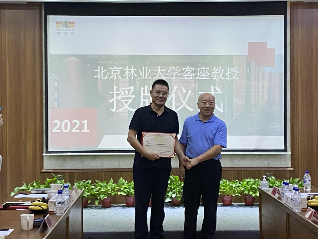 在參觀后的座談環(huán)節(jié),于志明院長首先對霍爾茨木門在家居行業(yè)的科技研發(fā)和產(chǎn)品創(chuàng)新等方面做出的貢獻(xiàn)表示了肯定和贊揚(yáng),然后為趙崇聯(lián)頒發(fā)了“客座教授”聘書,并發(fā)出正式邀請,提出建立霍爾茨木門—北京林業(yè)大學(xué)的北京教學(xué)示范基地的建議,希望通過基地,為行業(yè)培育出更多青年人才。面對邀請,趙崇聯(lián)表示“非常贊同”,霍爾茨也希望通過基地,吸納更多優(yōu)秀的專業(yè)人才,為企業(yè)發(fā)展注入年輕力量,共同開創(chuàng)出更具客戶價(jià)值的新產(chǎn)品,為行業(yè)做出更多貢獻(xiàn)。