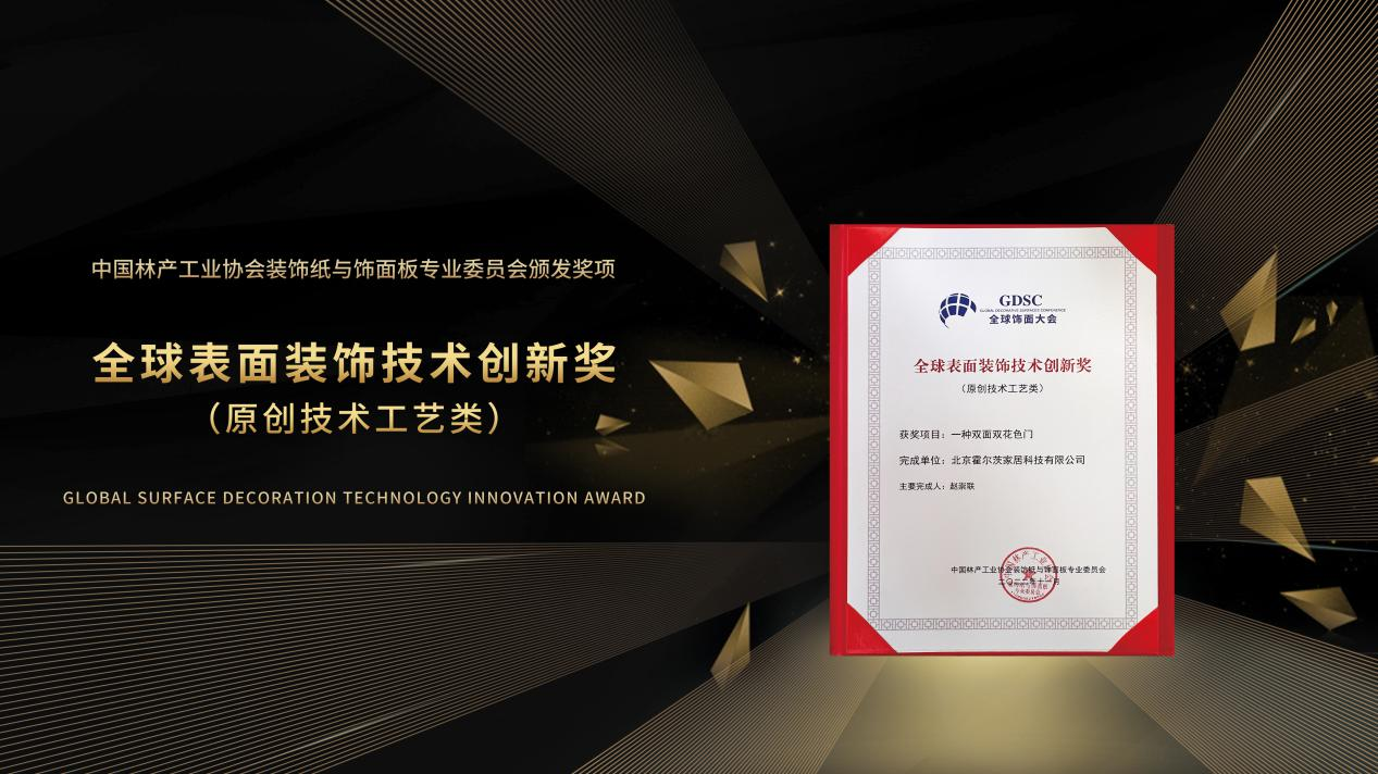 得益于CPL飾面材料的優(yōu)越性能,以及SAPPI離型觸感壓合技術的研發(fā),2022年11月,霍爾茨獲得了由中國林產工業(yè)協(xié)會與飾面板專業(yè)委員會頒發(fā)的“全球表面裝飾技術創(chuàng)新獎”,帶來更進一步的“色紋并美”空間體驗。這一獎項不僅彰顯了霍爾茨強大的研發(fā)力,以及不斷創(chuàng)新更迭產品以滿足消費者更健康生活需求的銳意進取精神,也為產業(yè)鏈的企業(yè)互通提供了優(yōu)質的選擇樣本,進一步推動了木門行業(yè)的健康發(fā)展和創(chuàng)新發(fā)展。