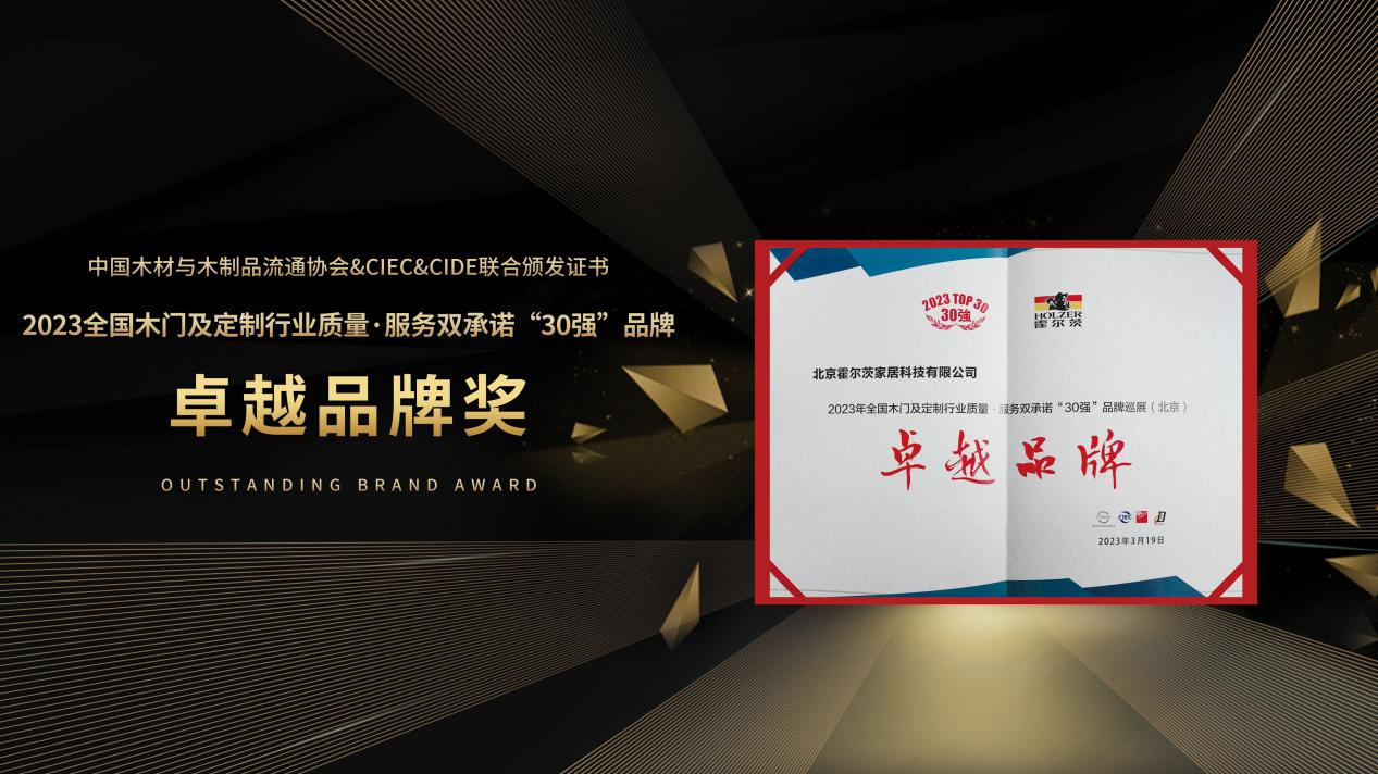憑借企業(yè)綜合實力,霍爾茨榮獲由中國木材與木制品流通協(xié)會&CIEC&CIDE聯(lián)合頒發(fā)的2023全國木門及定制行業(yè)質量·服務雙承諾“30強”品牌——卓越品牌獎,是在連續(xù)18年獲得全國市場、工程木門企業(yè)產品、質量售后服務雙承諾活動單位即木門行業(yè)30強獎項后的又一有力證明。