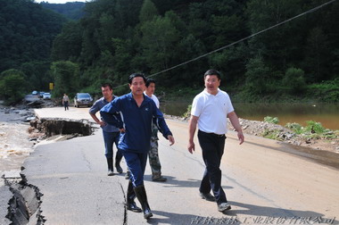 中國(guó)吉林森工集團(tuán)公司副總經(jīng)理張顯成親赴抗洪現(xiàn)場(chǎng)視察